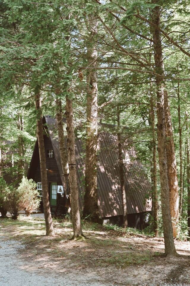 Our Aframes are accessible via a one-lane street that begins with a gravel path providing a touch of rustic charm. As you ascend the hill, the road (about 1/4 mile at this point) transforms into smooth blacktop, ensuring a comfortable drive up to the cabins. Once you've reached the top of the hill it transitions back to gravel, maintaining the serene, secluded atmosphere. This road offers an intimate ambiance with multiple turnouts, making the journey to your cabin both charming and easily manageable.