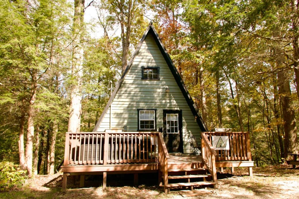 Tail End, a darling A-Frame, is perched in the prime spot at Red River Gorge. This charming cabin, one of our five updated gems, nestles among the trees of "The Ridge." Whether you unwind on your private porch or in a hammock, gather around the communal fire pit with friends after an adventurous day of hiking or climbing, or simply find peace and tranquility in nature, Tail End offers a clean, chic, and cozy haven. Your ideal Gorge vacation begins here!